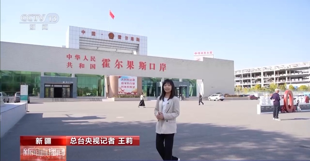 總臺(tái)央視記者 王莉:這里是位于新疆伊犁哈薩克自治州的霍爾果斯公路口岸,這座巍峨雄偉的建筑就是霍爾果斯第六代國(guó)門,這里與哈薩克斯坦隔河相望,是中國(guó)向西開(kāi)放的重要窗口和連接亞歐大陸的“黃金口岸”。千年以前,霍爾果斯就是古絲綢之路上的重要驛站,一百多年前,霍爾果斯公路口岸正式通關(guān),從20世紀(jì)50年代的第一代國(guó)門,到如今的第六代國(guó)門,國(guó)門的變遷,見(jiàn)證著霍爾果斯的這座邊境城市的蓬勃發(fā)展。