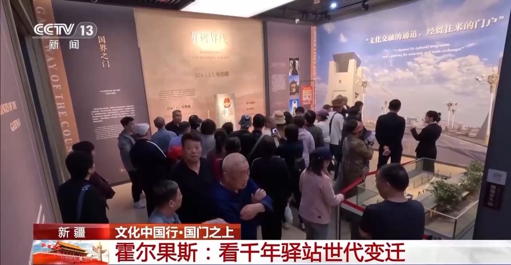 總臺(tái)央視記者 王莉:從霍爾果斯第六代國(guó)門向北,就來(lái)到了第五代國(guó)門。如今第五代國(guó)門雖然已經(jīng)不再承擔(dān)國(guó)門的功能,但是當(dāng)?shù)匕阉慕ǔ闪嘶魻柟箛?guó)門文化展示館,通過(guò)文字、圖片、視頻向大家講述著國(guó)門的變遷,口岸的歷史。