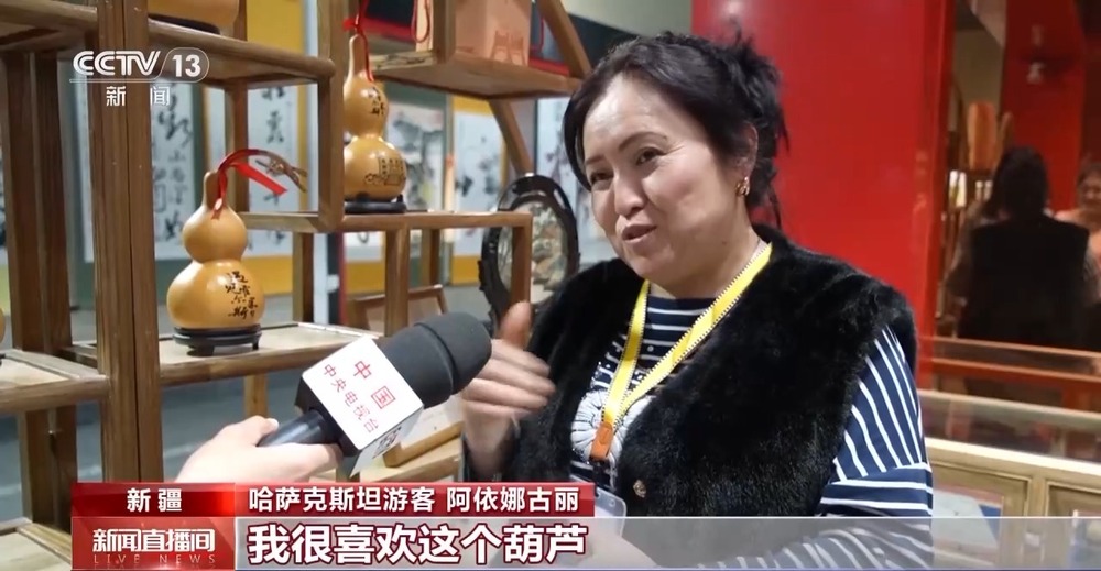 哈薩克斯坦游客 阿依娜古麗:我很喜歡這個(gè)葫蘆,我覺(jué)得它展示了中國(guó)的傳統(tǒng)文化,中國(guó)有5000年的文化,我非常喜歡。這是我第一次來(lái)到中國(guó),我會(huì)把在這里的所見(jiàn)所聞講給我的家人,以后我還會(huì)再來(lái)的。