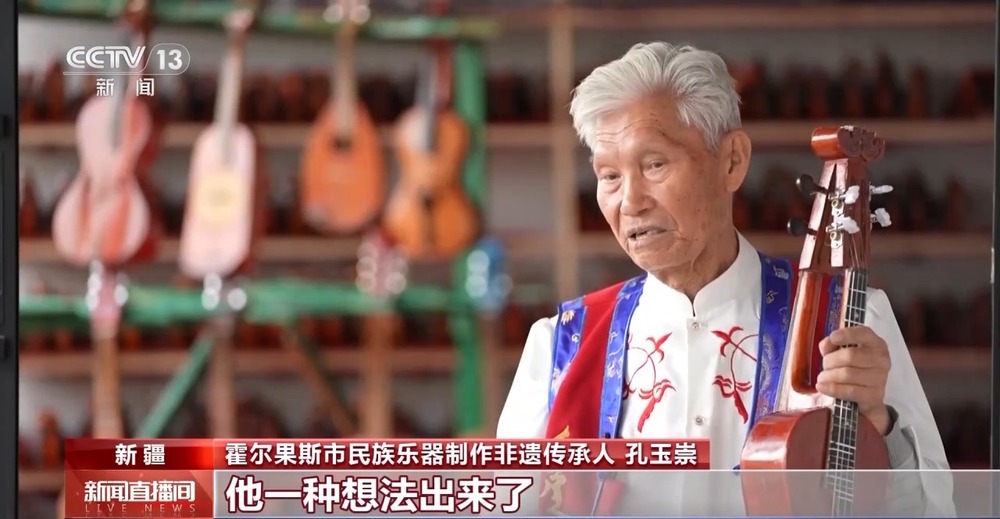 霍爾果斯市民族樂(lè)器制作非遺傳承人 孔玉崇:我現(xiàn)在的想法是,把這個(gè)樂(lè)器的質(zhì)量要提升,提升到一個(gè)很高的層次上。一定要走出去,我們的聲音傳到全世界,那是絕美的聲音。