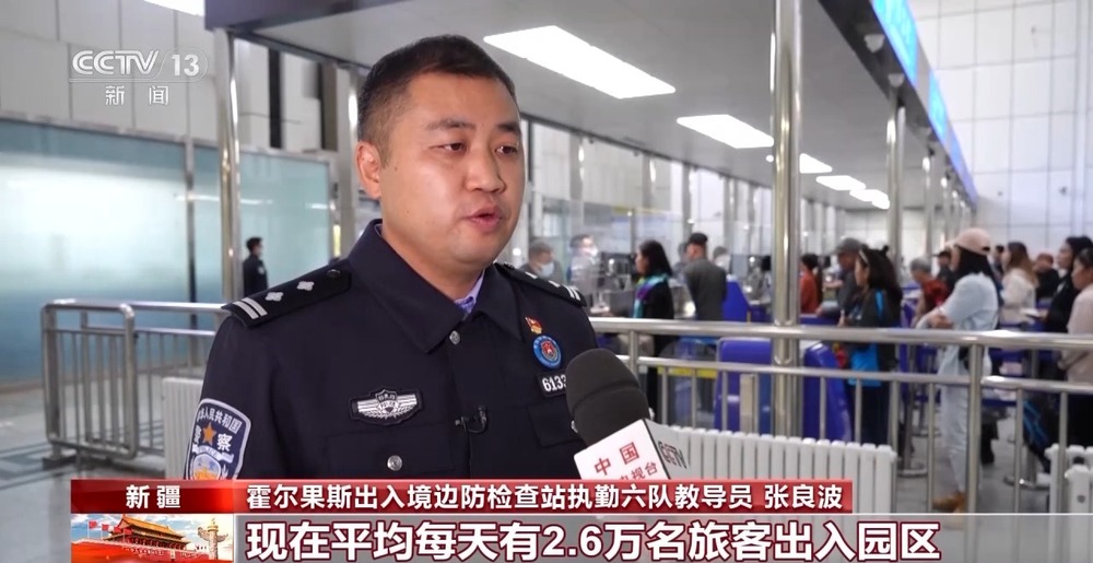 霍爾果斯出入境邊防檢查站執(zhí)勤六隊(duì)教導(dǎo)員 張良波:現(xiàn)在平均每天有2.6萬(wàn)名旅客出入園區(qū),為最大限度保障旅客高效快速通關(guān),我們采取錯(cuò)時(shí)通關(guān)模式。我們也會(huì)根據(jù)旅客的流量情況,動(dòng)態(tài)調(diào)整我們的人工查驗(yàn)通道,最高可以加開(kāi)到12條。