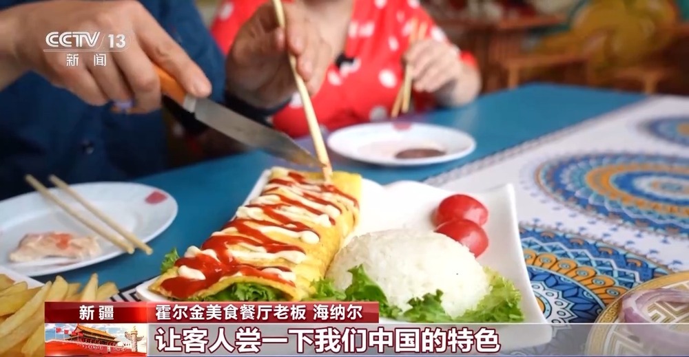 霍爾金美食餐廳老板海納爾:我開(kāi)這個(gè)餐廳,兩個(gè)國(guó)家的廚師帶過(guò)來(lái),讓客人嘗一下我們中國(guó)的特色,哈方的特色,我們繼續(xù)努力,繼續(xù)干。