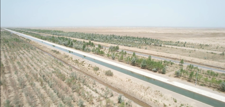 1964年,阿拉爾市的拓荒者們根據(jù)自己周邊環(huán)境巧妙運(yùn)用“更換土壤與開鑿排堿渠道”的策略,也種植出了萬畝林地。與此同時(shí),另一批拓荒者則在那片鹽堿度較高的沙漠邊緣,以新土替換舊土,栽種上了一排排樹木。他們?cè)跇涿缤鈬诰蛄松疃冗_(dá)三至四米的排渠,借助大規(guī)模的漫灌手段滋養(yǎng)著這些樹苗。隨著鹽堿隨水流入排渠并被排出,樹木的成活率得以顯著提升,隨著時(shí)間的推移,這些樹木逐漸構(gòu)成了連綿的林網(wǎng)。