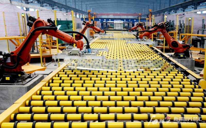 2016年8月,位于新疆生產(chǎn)建設兵團第五師的新疆普耀新型建材有限公司生產(chǎn)車間內(nèi)景。新疆圖片總匯資料圖片