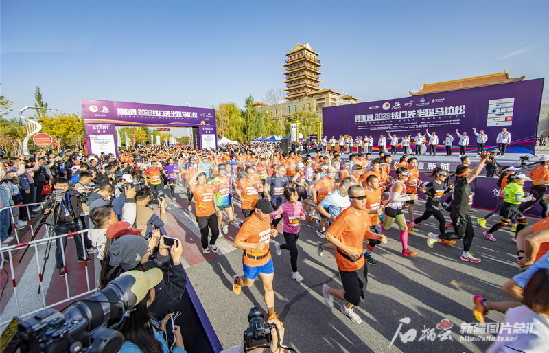 2023年10月15日,博斯騰·2023鐵門關半程馬拉松在新疆生產(chǎn)建設兵團第二師絲路雄關景區(qū)鳴槍開賽。李嘉成攝