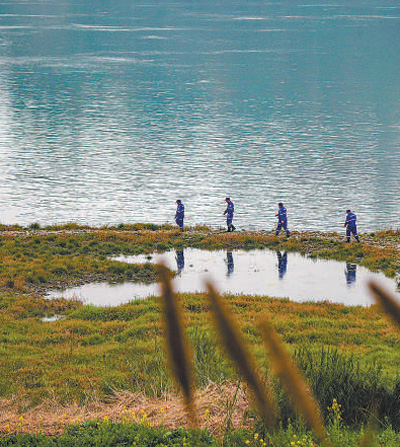 四川宜賓的巡護(hù)隊員正在長江邊的一處魚類產(chǎn)卵地進(jìn)行巡護(hù)。莊歌爾攝(人民視覺)