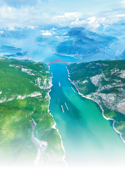 綠色轉(zhuǎn)型,高質(zhì)量發(fā)展動能澎湃。黃金水道暢通低碳,今年前7月長江干線港口完成貨物吞吐量超22億噸,純電動游輪往來穿梭、綠色港口點綴其間?!熬G色引擎”更加強(qiáng)勁,烏東德、白鶴灘、溪洛渡、向家壩、三峽、葛洲壩6庫聯(lián)調(diào),1滴長江水發(fā)6次電,世界最大清潔能源走廊總裝機(jī)容量達(dá)7169.5萬千瓦。創(chuàng)新引領(lǐng)綠色發(fā)展,現(xiàn)代產(chǎn)業(yè)集群快速壯大,新動能新優(yōu)勢積極塑造發(fā)展。