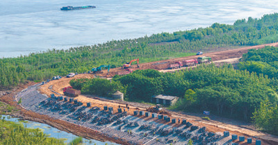 長江安徽蕪湖段整治工程施工現(xiàn)場。該工程建成后可進(jìn)一步提升防洪能力,改善生態(tài)環(huán)境。肖本祥攝(人民視覺)