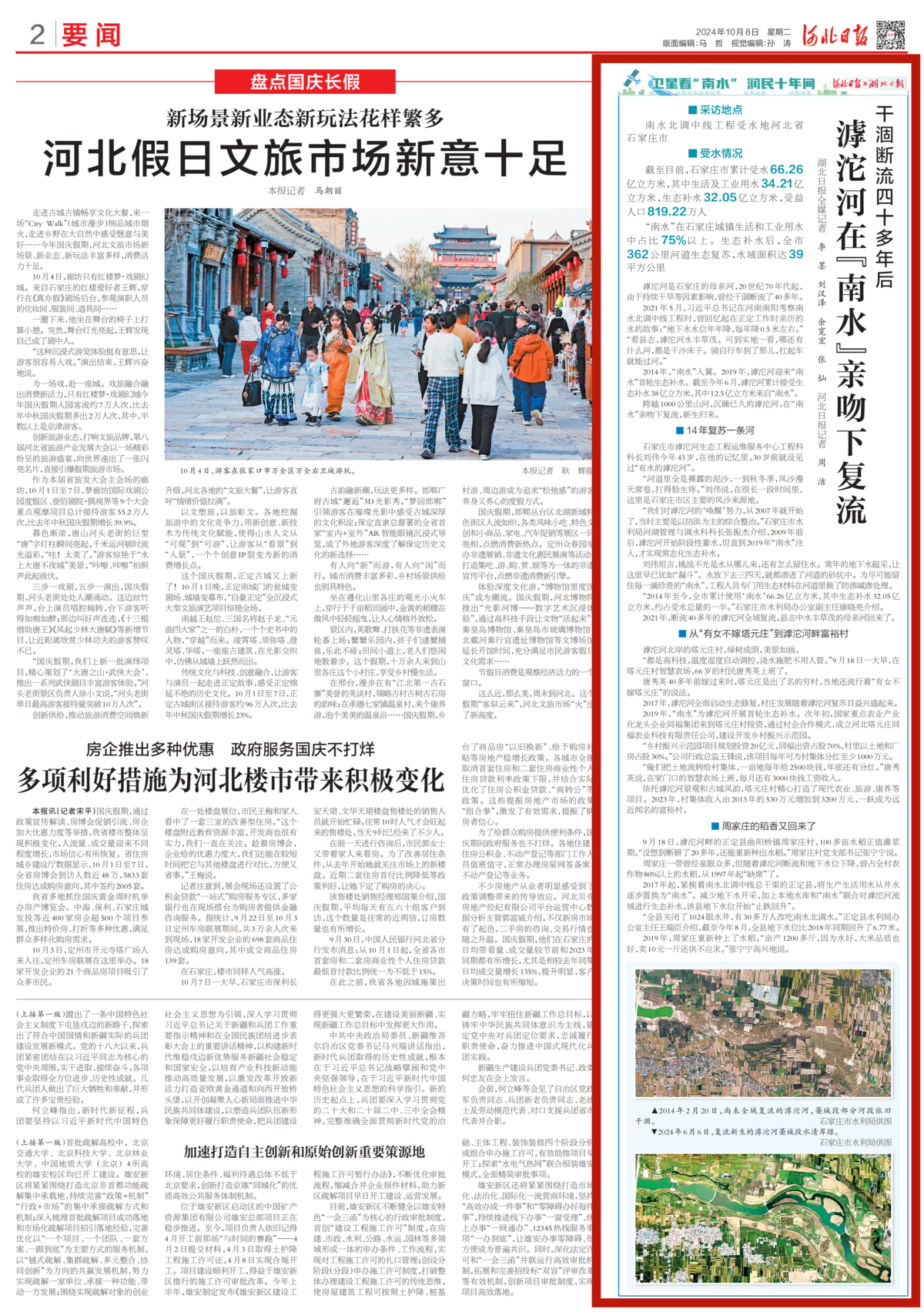 “南水”在石家莊城鎮(zhèn)生活和工業(yè)用水占比達75%以上。生態(tài)補水后,全市362公里河道生態(tài)復蘇,水域面積達39平方公里。