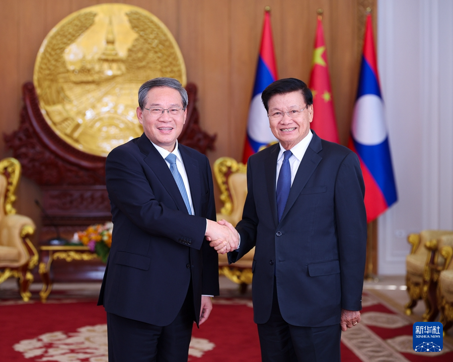 當(dāng)?shù)貢r(shí)間10月11日,國務(wù)院總理李強(qiáng)在老撾主席府會(huì)見老撾人民革命黨中央總書記、國家主席通倫。新華社記者 劉彬 攝