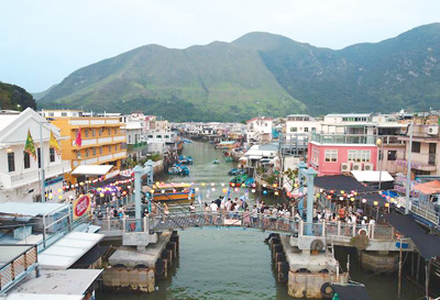 旅客在香港大澳漁村深度游,感受當(dāng)?shù)伧攘Α?/p>