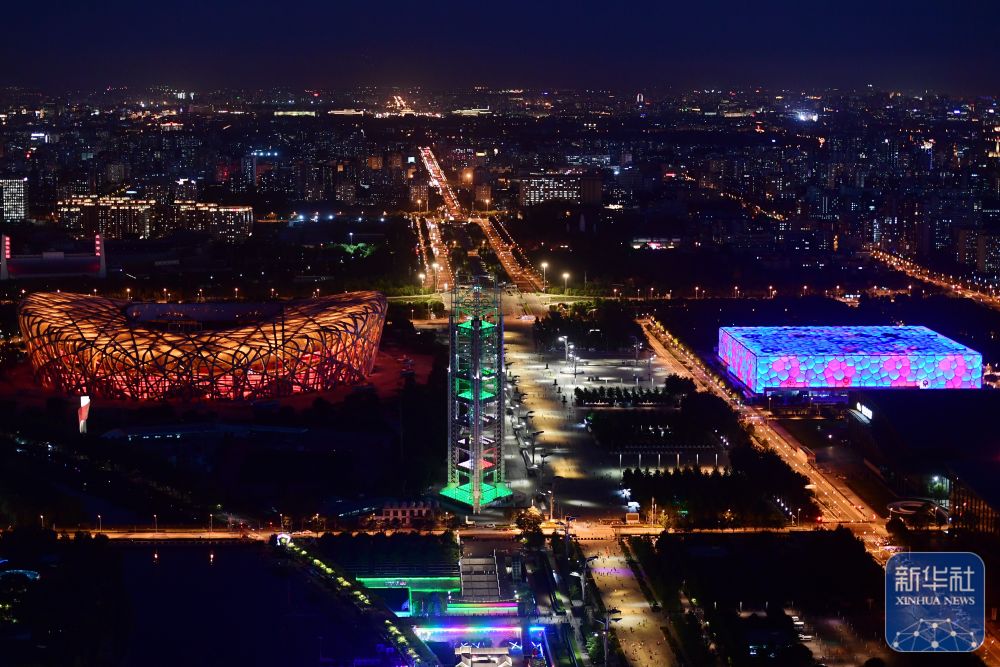 這是2022年6月23日拍攝的國(guó)家體育場(chǎng)(左)與國(guó)家游泳中心夜景。作為“雙奧之城”的標(biāo)志性場(chǎng)館群“冰絲帶”、“鳥巢”、“冰立方”聯(lián)動(dòng)亮燈,共同傳遞奧林匹克精神,號(hào)召民眾用運(yùn)動(dòng)點(diǎn)亮健康生活,創(chuàng)造美好未來。 新華社記者 張晨霖 攝
