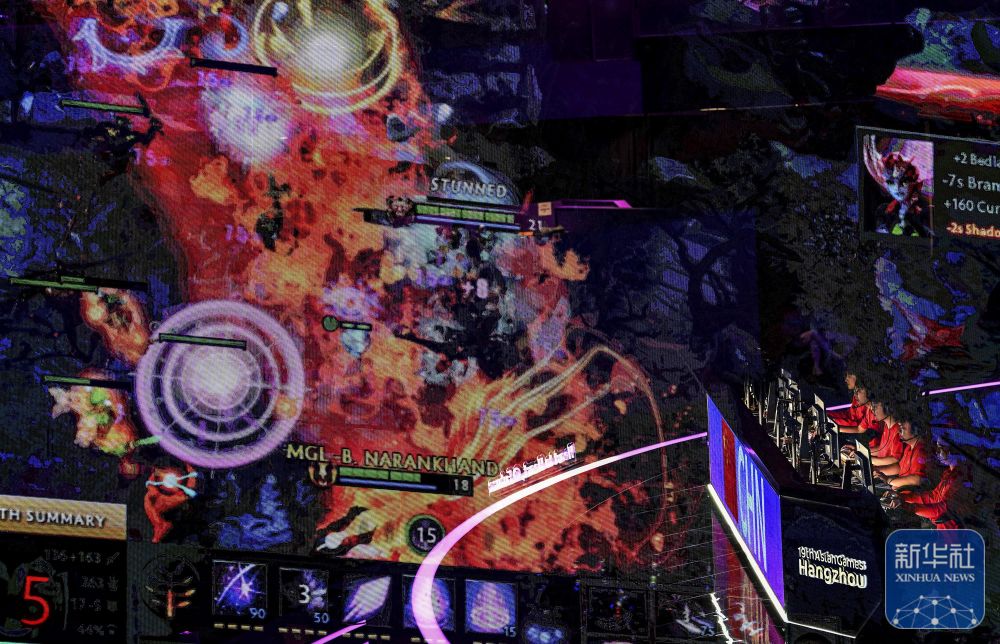 2023年10月2日,中國(guó)隊(duì)選手在比賽中(多重曝光照片)。 當(dāng)日,在杭州亞運(yùn)會(huì)電子競(jìng)技項(xiàng)目刀塔決賽中,中國(guó)隊(duì)以2比1戰(zhàn)勝蒙古國(guó)隊(duì),獲得冠軍。 新華社記者 顏麟蘊(yùn) 攝