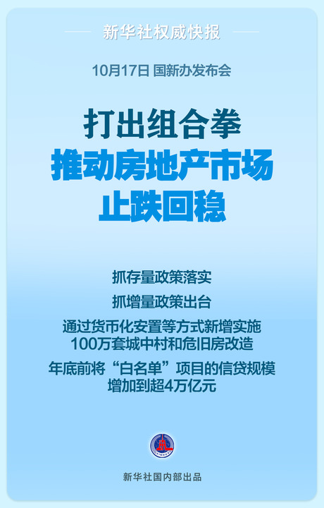 17日,國新辦發(fā)布會引起市場高度關(guān)注。住房城鄉(xiāng)建設(shè)部、財(cái)政部、自然資源部、中國人民銀行、國家金融監(jiān)督管理總局五部門有關(guān)負(fù)責(zé)人齊亮相,推出增量舉措,落實(shí)存量政策,打出一套組合拳,推動房地產(chǎn)市場止跌回穩(wěn)。
