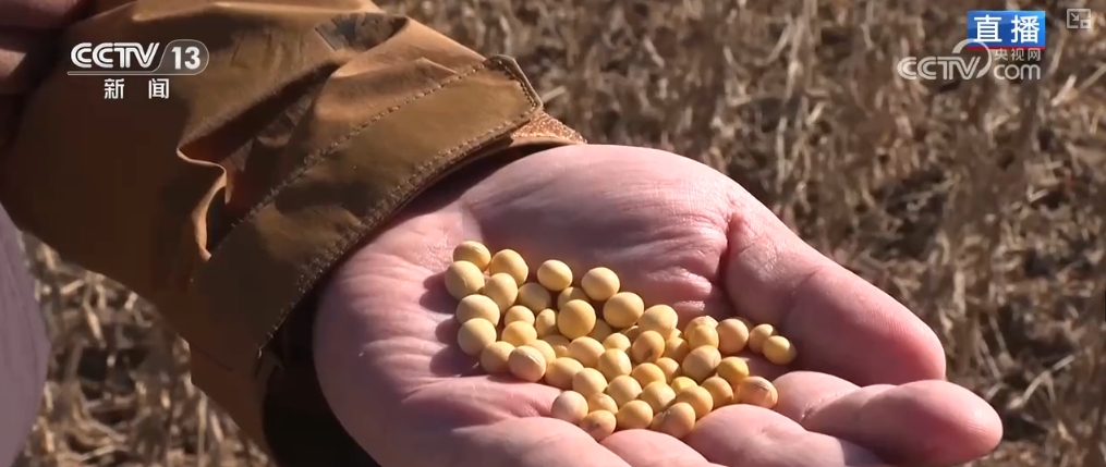 這片地里正在收獲的就是蛋白豆,從春天播種時,農(nóng)業(yè)專家和科研團(tuán)隊就深入到大豆主產(chǎn)區(qū),為農(nóng)戶們帶來了多年通過實驗篩選的優(yōu)質(zhì)品種。這些種子是從幾十個品種中選取出來的抗病蟲害、蛋白質(zhì)含量更高的優(yōu)良豆種。同時,通過實地種植測產(chǎn)試驗,專家們指導(dǎo)農(nóng)戶把每畝地里種植的大豆,從多年以來的8000株增加到1萬株。通過合理的種植布局和科學(xué)的田間管理,2024年的畝產(chǎn)可以達(dá)到450斤以上,比增密種植前畝產(chǎn)增收了五六十斤。