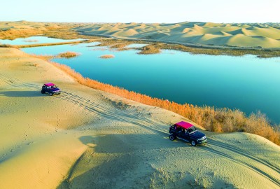 光著腳丫行走在塔克拉瑪干沙漠,細沙在腳趾縫里流溢著溫暖與舒適。沙梁如刃,綿延遠去,又似佳人側(cè)臥的倩影……大漠,胡楊,碧水,藍天,還有當(dāng)?shù)厝藗兡欠輬皂g不拔、樂觀向上的生活態(tài)度,無不讓游客心馳神往。