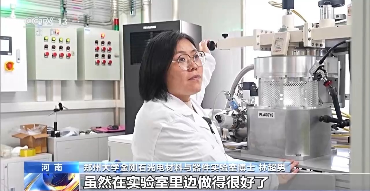 鄭州大學(xué)金剛石光電材料與器件實驗室博士 林超男:雖然在實驗室里邊做得很好了,但是1臺設(shè)備跟100臺設(shè)備來對比,確實差別還是很大的。有很多實驗室沒有遇到過的問題,一步一步去克服這些困難。