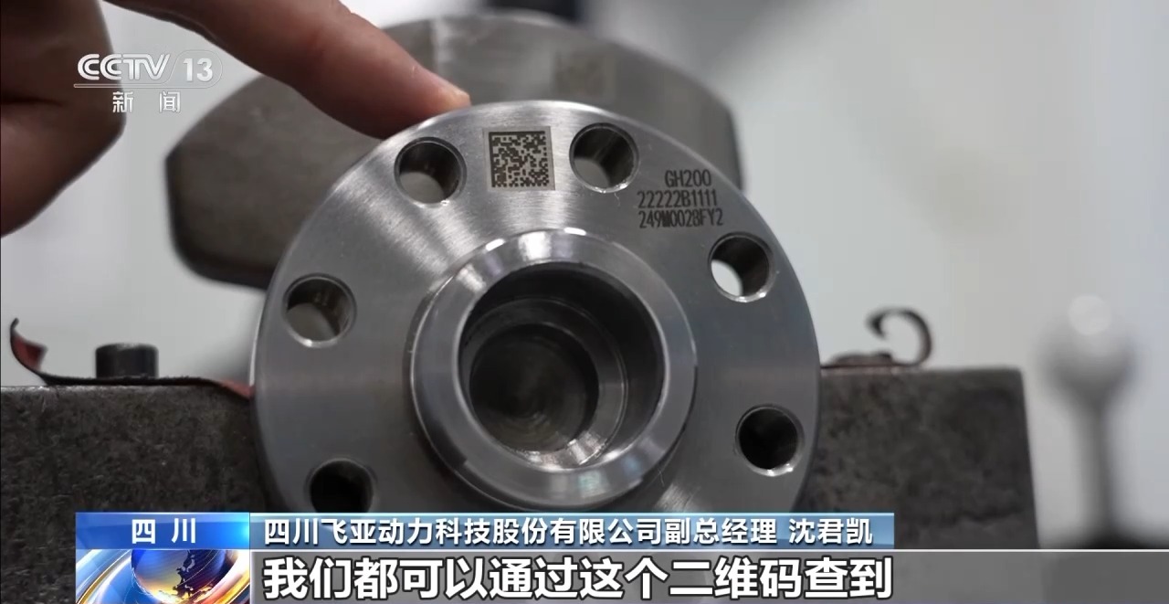 四川飛亞動力科技股份有限公司副總經(jīng)理 沈君凱:質(zhì)量的信息、技術(shù)的信息,甚至是當(dāng)天生產(chǎn)產(chǎn)品設(shè)備的整個機器的型號、設(shè)備的狀態(tài),我們都可以通過這個二維碼查到。