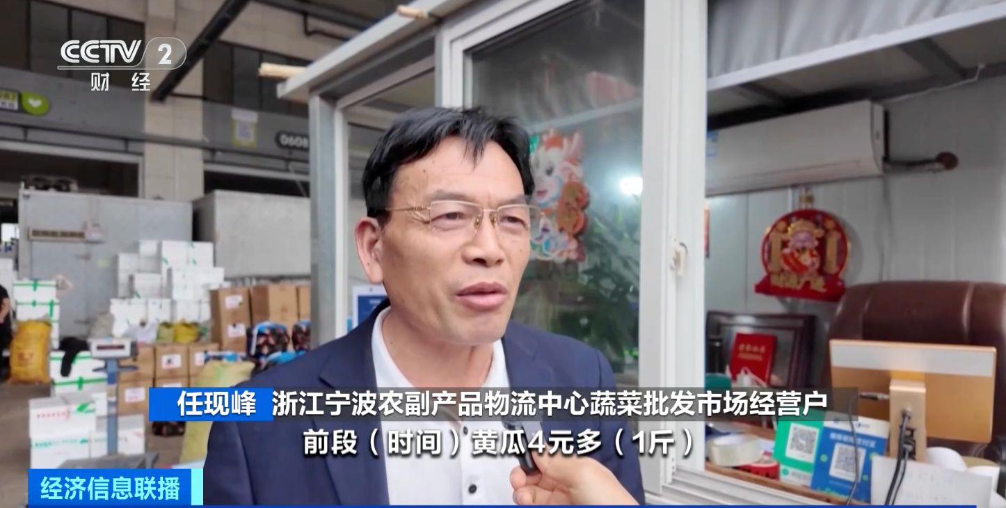 浙江寧波農(nóng)副產(chǎn)品物流中心蔬菜批發(fā)市場(chǎng)經(jīng)營(yíng)戶 任現(xiàn)峰:黃瓜前段時(shí)間4元多一斤,現(xiàn)在降到2元多,降了一半。