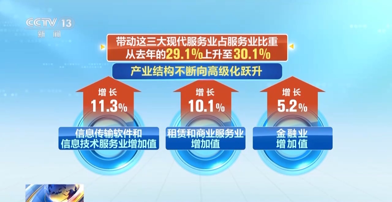 產(chǎn)業(yè)結(jié)構(gòu)持續(xù)升級(jí)。前三季度,裝備制造業(yè)增加值占全部規(guī)模以上工業(yè)的比重達(dá)33.8%,已連續(xù)19個(gè)月保持在30%以上。信息傳輸軟件和信息技術(shù)服務(wù)業(yè)、租賃和商業(yè)服務(wù)業(yè)、金融業(yè)增加值分別以11.3%、10.1%和5.2%的速度快速增長(zhǎng),帶動(dòng)這三大現(xiàn)代服務(wù)業(yè)占服務(wù)業(yè)比重從去年的29.1%上升至30.1%,產(chǎn)業(yè)結(jié)構(gòu)不斷向高級(jí)化躍升。