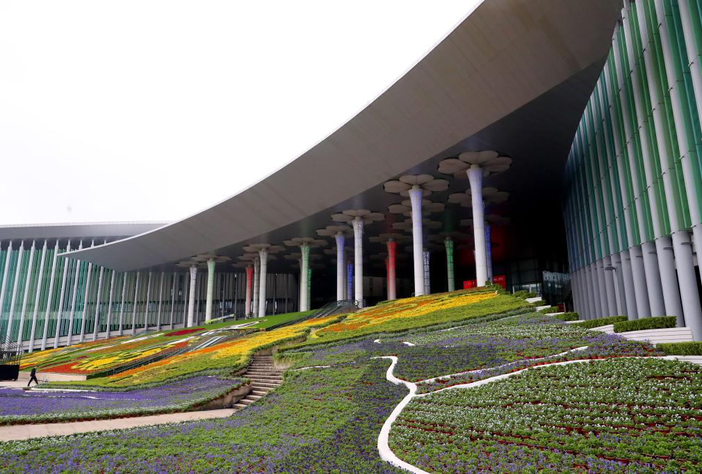 這是10月22日拍攝的國家會(huì)展中心(上海)南廣場花壇裝飾。新華社記者方喆 攝