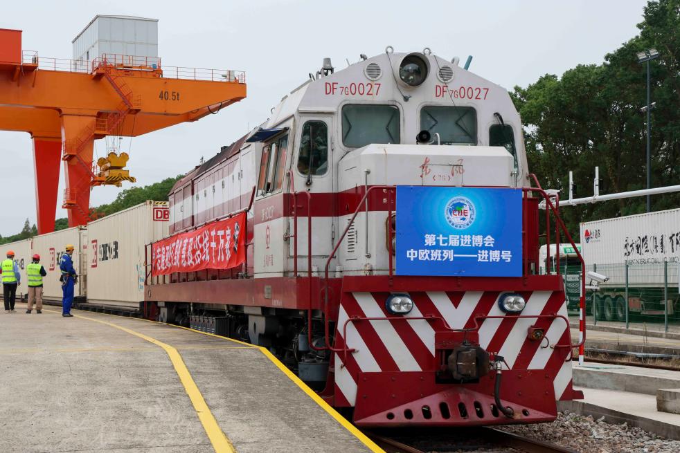 10月20日,首趟“中歐班列——進(jìn)博號(hào)”抵達(dá)上海鐵路物流中心閔行貨場中儲(chǔ)專用線。新華社記者王翔 攝