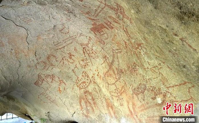 新疆哈巴河縣多尕特洞穴彩繪巖畫。哈巴河縣融媒體供圖