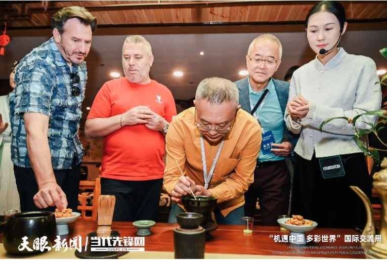 打卡“天下第一壺”景觀,參訪團(tuán)層層爬樓,領(lǐng)略“壺中”的每一處風(fēng)情,體驗茶道茶藝,欣賞茶山茶歌,真可謂是“茶里乾坤大,壺中日月長”。