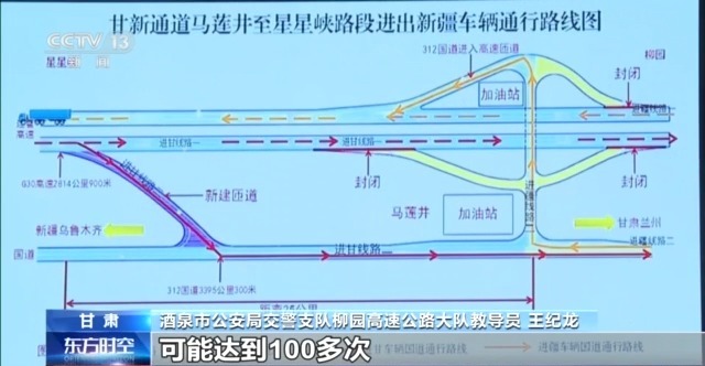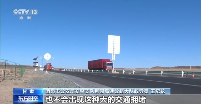 酒泉市公安局交警支隊(duì)柳園高速公路大隊(duì)教導(dǎo)員 王紀(jì)龍:我們每年這個路段的交通擁堵,可能達(dá)到100多次。