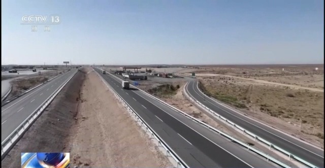 甘肅交投提質(zhì)改造項(xiàng)目河西現(xiàn)場辦主任 李國軍:我們現(xiàn)在采取的方案是,從甘新交界處,星星峽兩公里的位置,修連接匝道。新疆到甘肅的方向,從312線這個地方下高速,一直沿國道走,走到馬蓮井這可以加油,加完油沿著國道繼續(xù)走。然后甘肅往新疆的方向,加完油后,直接上高速走了,所以這兩條線路在這是平行調(diào)度,不用平面交叉了。