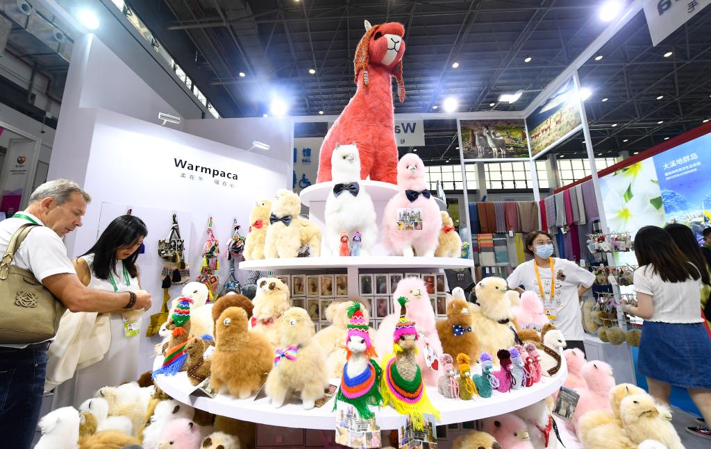 2021年5月7日,在海南海口舉行的首屆中國國際消費品博覽會(簡稱“消博會”)上,人們在秘魯“溫暖駝”展位參觀?! ?img alt="" oldsrc="W020241109768561928138.jpg" src="./W020241109768561928138.jpg" />