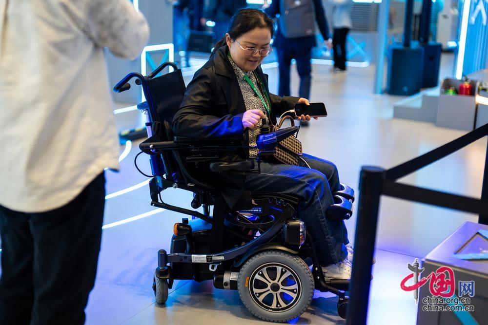 觀眾在現(xiàn)場(chǎng)體驗(yàn)智能輪椅。中國網(wǎng)記者