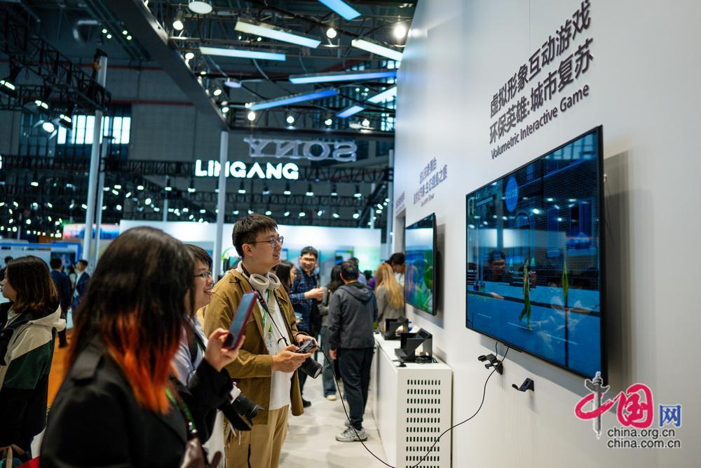觀眾體驗(yàn)虛擬形象互動(dòng)游戲。中國網(wǎng)記者