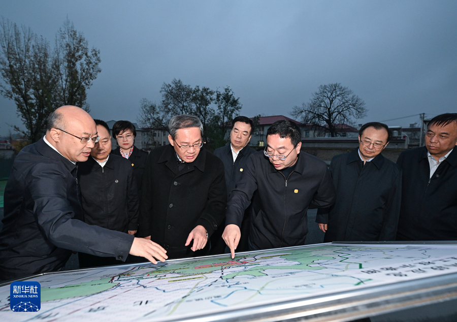 11月13日,中共中央政治局常委、國務(wù)院總理李強在河北調(diào)研。這是李強在涿州市小清河分洪區(qū)南圍堤建設(shè)工程現(xiàn)場,察看項目最新進(jìn)展,聽取河北省災(zāi)后重建重大水利工程等情況匯報,與設(shè)計施工監(jiān)理人員交流。新華社記者 饒愛民 攝