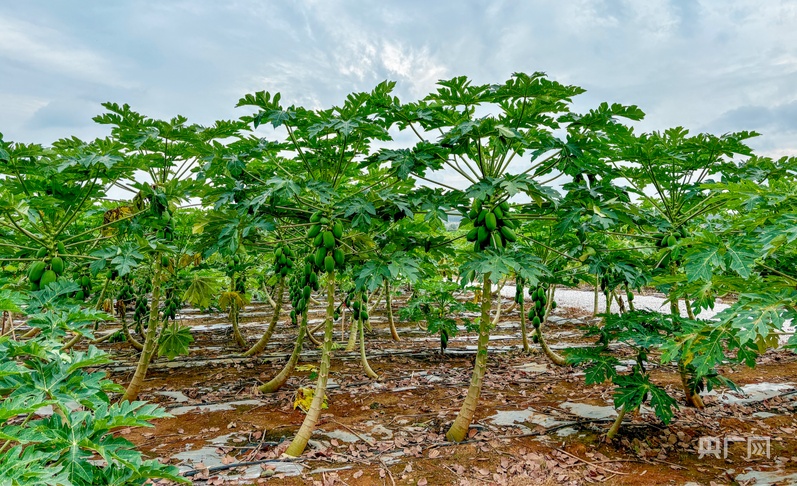 “木瓜營養(yǎng)價值高、口感特別、用途也很廣,可以制成木瓜絲、醬菜、木瓜酵素等等,有很好的市場前景。”廣西農(nóng)墾明陽農(nóng)場公司相關負責人鄒優(yōu)君介紹,公司也帶領農(nóng)民參與木瓜種植,免費向基地農(nóng)戶提供技術指導和技術培訓服務,并按訂單回收。當前,已輻射帶動周邊村民種植木瓜近3000畝。