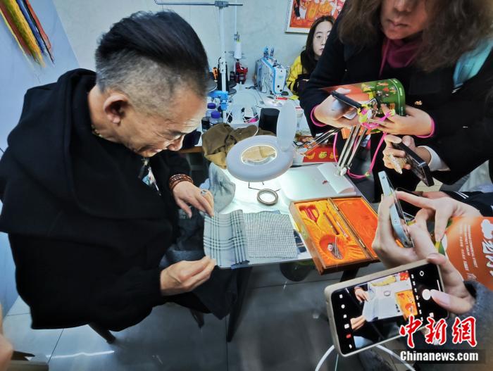 不足十平方米的店鋪中,老師傅徐春元桌前靜坐,目光如炬,手腕翻飛,細(xì)如牛毛的針在布料中來回穿梭。已年過花甲的他,從事織補工作整整48年,是“傳統(tǒng)精工織補技藝”非遺項目持有人。那雙巧手,總能將破損的衣物修復(fù)得如初見般完美。