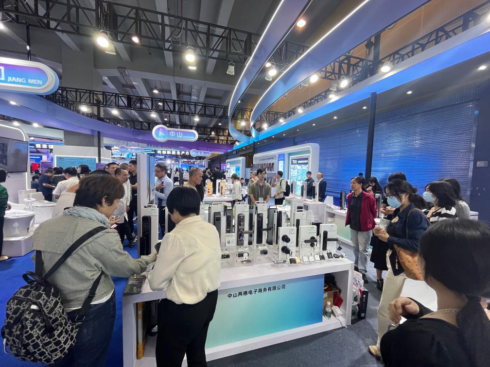 這次,不少產(chǎn)業(yè)集群、工業(yè)園區(qū)攜供應(yīng)鏈上下游企業(yè)集體參展。廣東省中山市小欖鎮(zhèn)智能鎖具產(chǎn)業(yè)集群代表企業(yè),正通過短視頻和直播向海外客戶推介最新的鎖具產(chǎn)品?!霸谡囊龑?dǎo)下,企業(yè)出海的步伐逐步加快,中山鎖具已推向全國、走向世界?!敝猩絻伤腚娮由虅?wù)有限公司業(yè)務(wù)經(jīng)理?xiàng)钣襁B說。