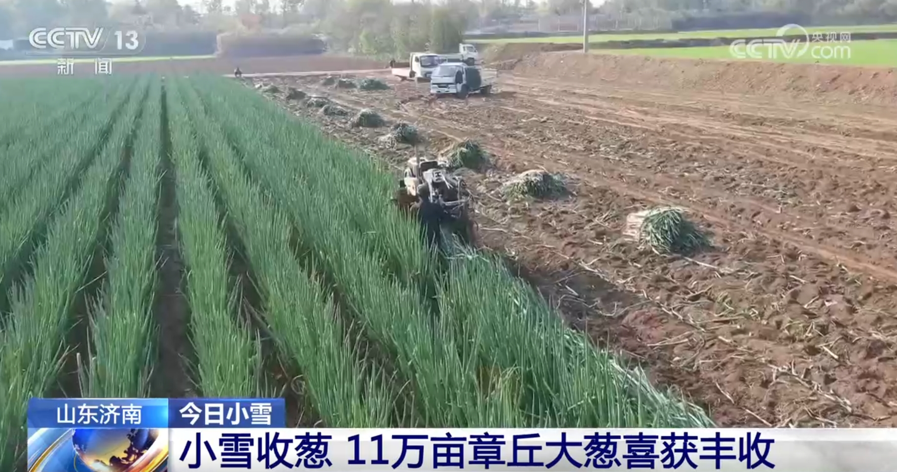 俗語說“小雪收蔥,不收就空”,小雪節(jié)氣是北方大蔥收獲的時(shí)候。在山東濟(jì)南,這里自古就有種植大蔥的傳統(tǒng),眼下11萬畝章丘大蔥喜獲豐收,村民們正忙著收蔥、賣蔥,種植基地里,大蔥收獲機(jī)的應(yīng)用大大提高了采收效率。