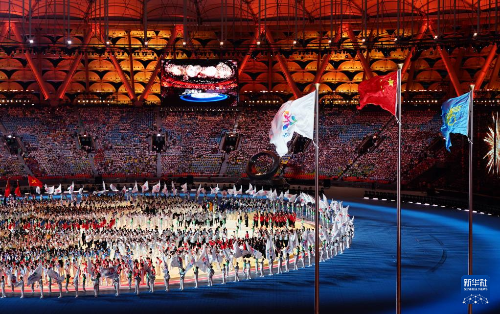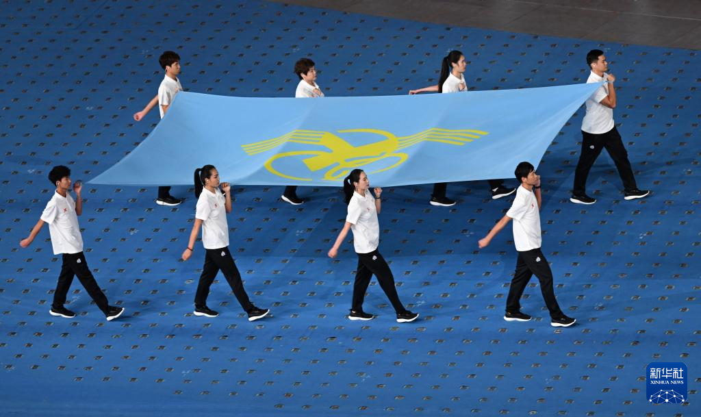 11月22日,中華人民共和國少數(shù)民族傳統(tǒng)體育運(yùn)動(dòng)會(huì)會(huì)旗在開幕式上入場。