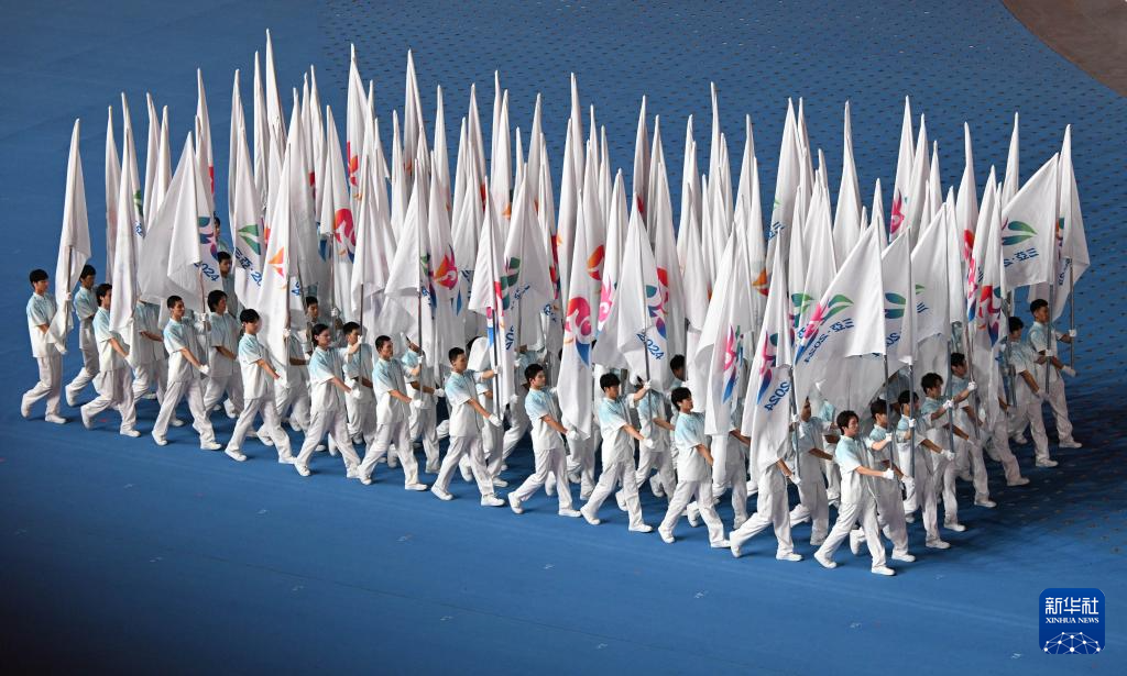 11月22日,中華人民共和國國旗在開幕式上入場。