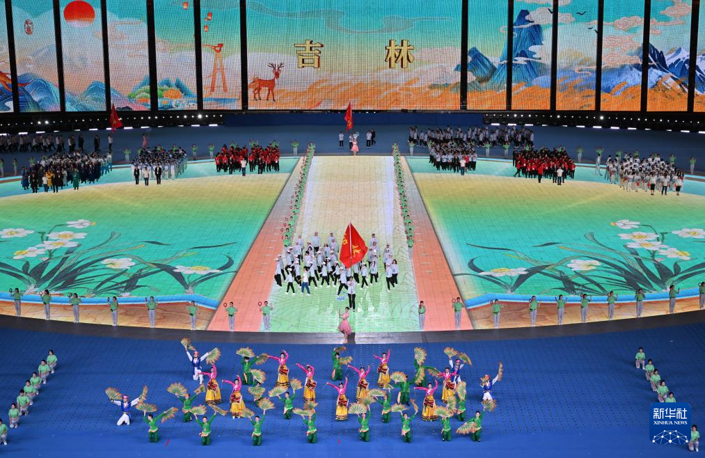 11月22日,吉林省代表團(tuán)在開幕式上入場。
