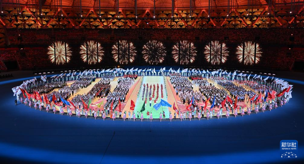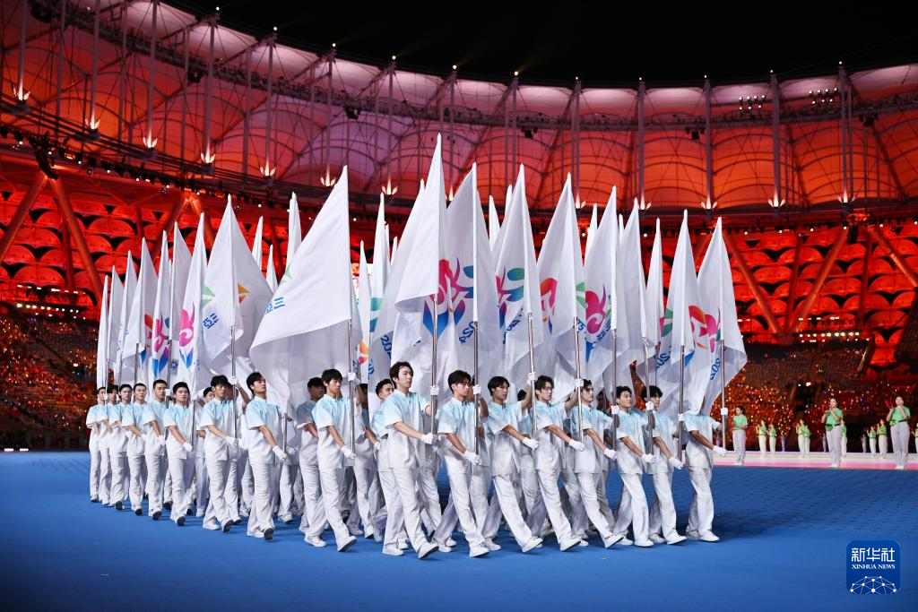11月22日,中華人民共和國第十二屆少數(shù)民族傳統(tǒng)體育運(yùn)動(dòng)會(huì)會(huì)旗方陣在開幕式上入場。