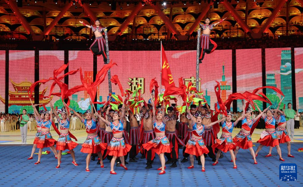11月22日,湖南省代表團(tuán)在開幕式上入場。