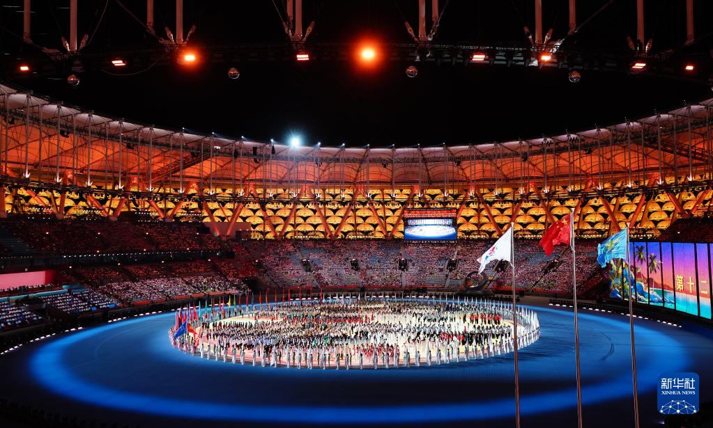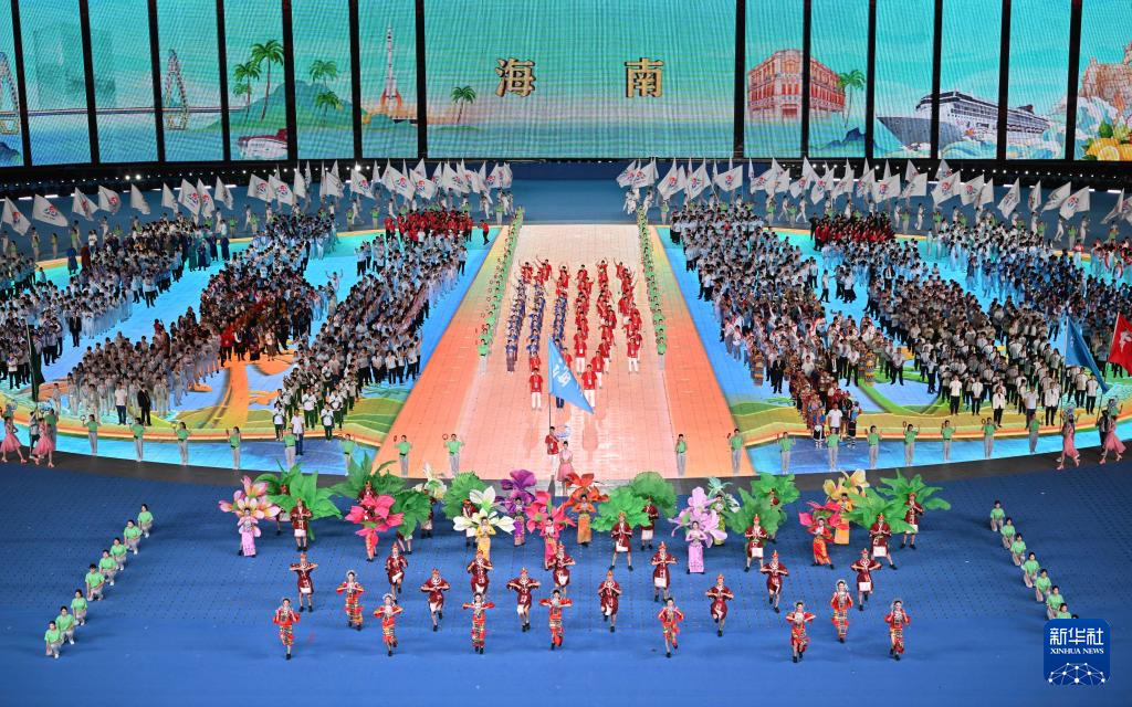 11月22日,海南省代表團(tuán)在開幕式上入場。