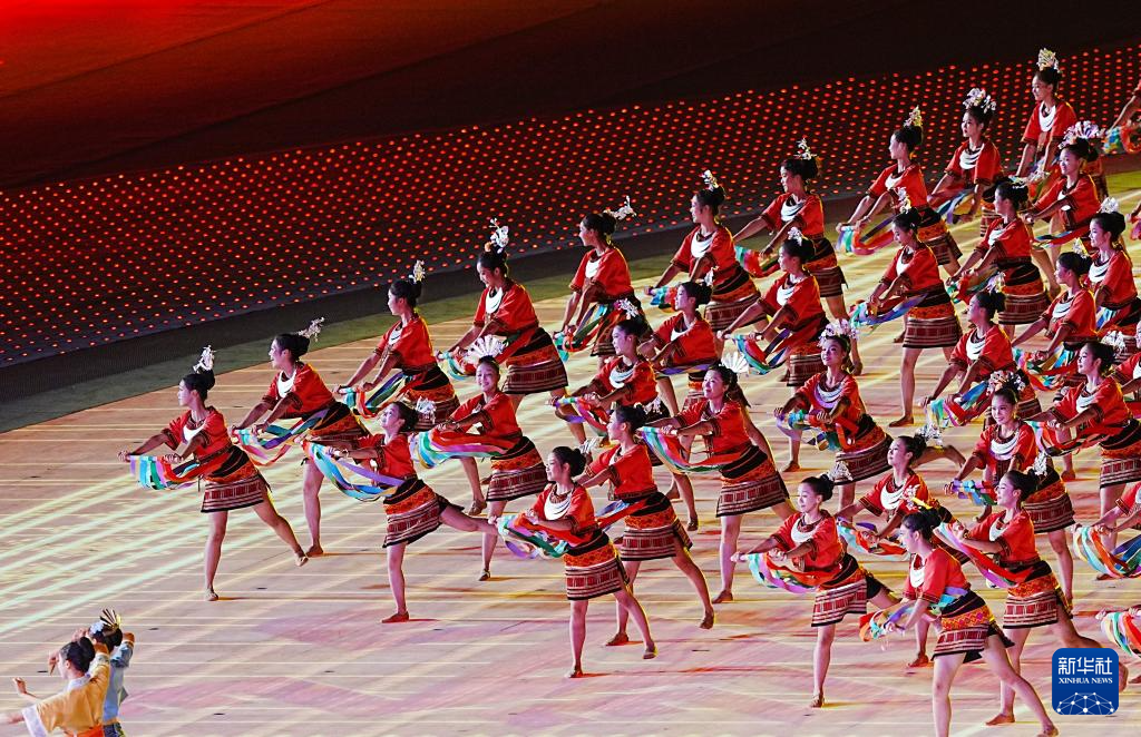 11月22日,開幕式現(xiàn)場升起中華人民共和國國旗、中華人民共和國少數(shù)民族傳統(tǒng)體育運(yùn)動(dòng)會(huì)會(huì)旗和中華人民共和國第十二屆少數(shù)民族傳統(tǒng)體育運(yùn)動(dòng)會(huì)會(huì)旗。