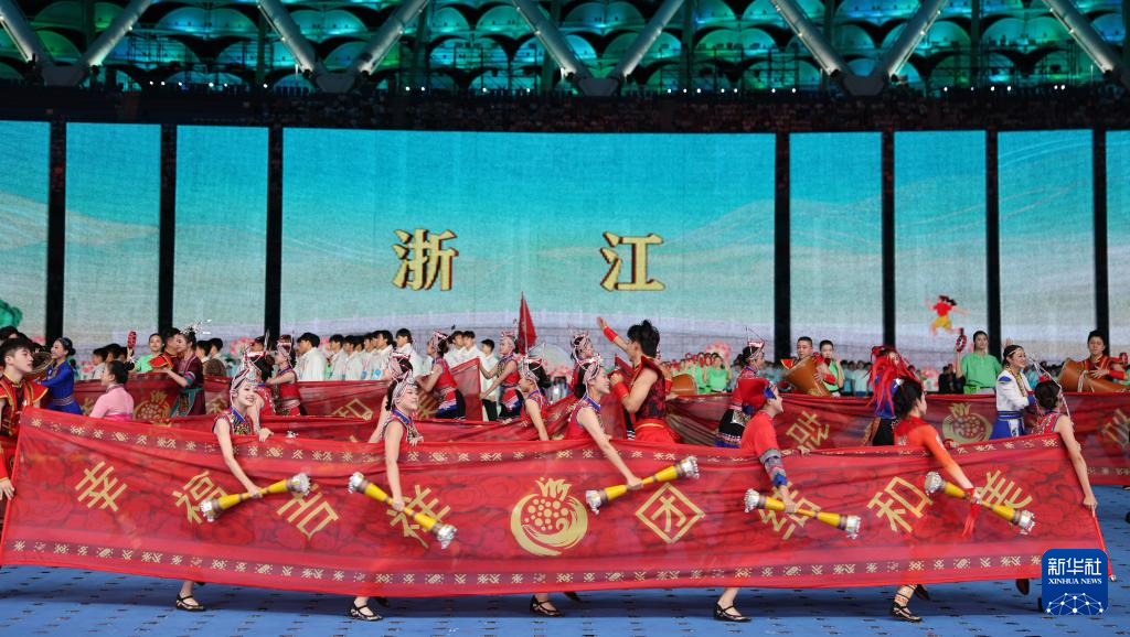 11月22日,浙江省代表團(tuán)在開幕式上入場。