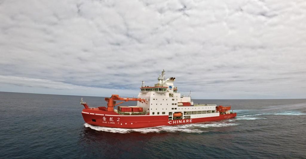 執(zhí)行中國(guó)第41次南極考察任務(wù)的“雪龍”號(hào)和“雪龍2”號(hào)于北京時(shí)間2024年11月19日開始穿越“咆哮”西風(fēng)帶。這是“雪龍2”號(hào)即將穿越“咆哮”西風(fēng)帶(無(wú)人機(jī)照片)。新華社發(fā)(陳棟彬 攝)