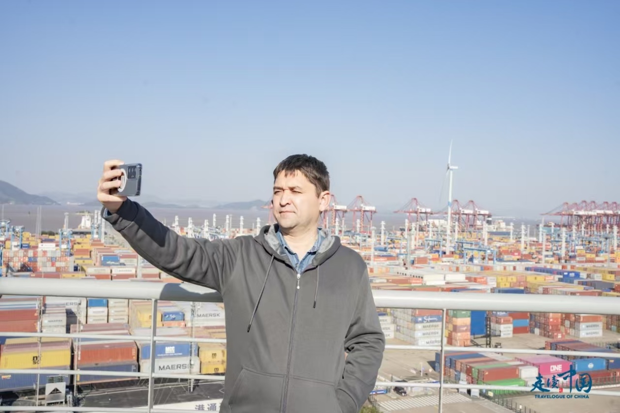 “就像他們剛介紹的那樣,舟山港的吞吐量更大,(航線)幾乎覆蓋了全世界、各大洲。說實話,這讓我很感興趣,我也很驚訝?!眮碜酝翈炻固箛译娨暋V播和電影委員會國際信息中心記者巴特爾·列杰波夫在參觀后激動地說道。