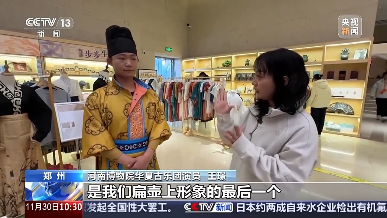 如今,河南博物院的創(chuàng)作者,根據(jù)黃釉扁壺定格的舞樂圖,復(fù)原出了“胡騰舞”,作為常設(shè)劇目,每一次上演,都像是一場古人與今人穿越時空的欣賞互動。