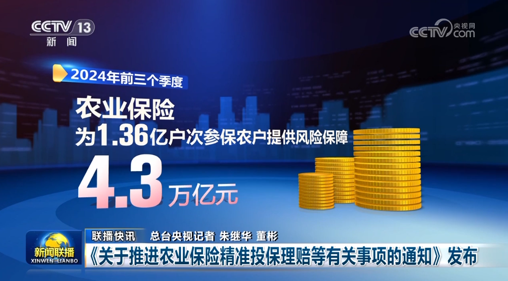 金融監(jiān)管總局等四部門近日聯(lián)合發(fā)布通知,對農業(yè)保險投保理賠、應收保費、條款費率、數據共享等提出要求,進一步提高投保理賠精準性,推動我國農業(yè)保險高質量發(fā)展。今年前三個季度,農業(yè)保險為1.36億戶次參保農戶提供風險保障4.3萬億元。